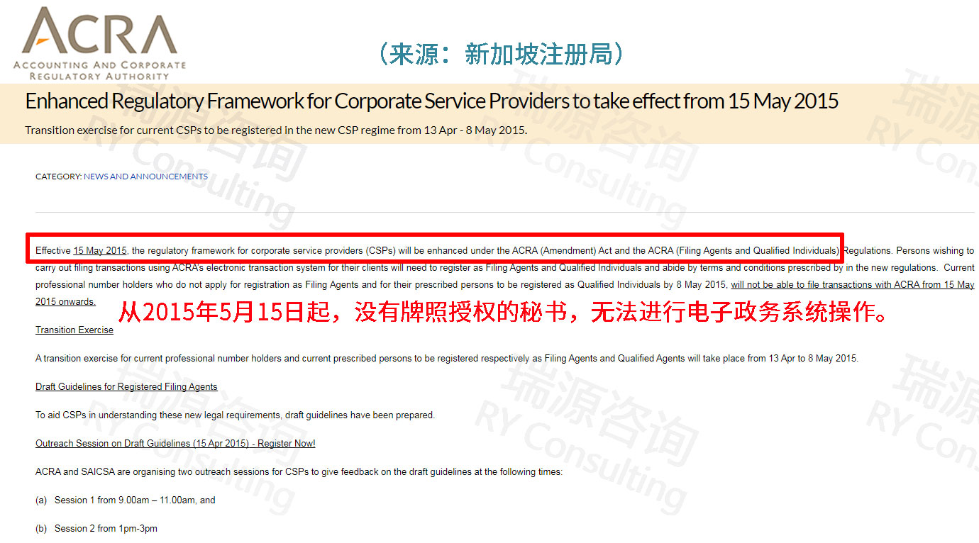 早在2015年5月,新加坡的注册局ACRA就出台了???公司服务机构CSPs登记管理条例。不得不赞叹,新加坡政府机构对全球趋势的独到眼光和前瞻性。
